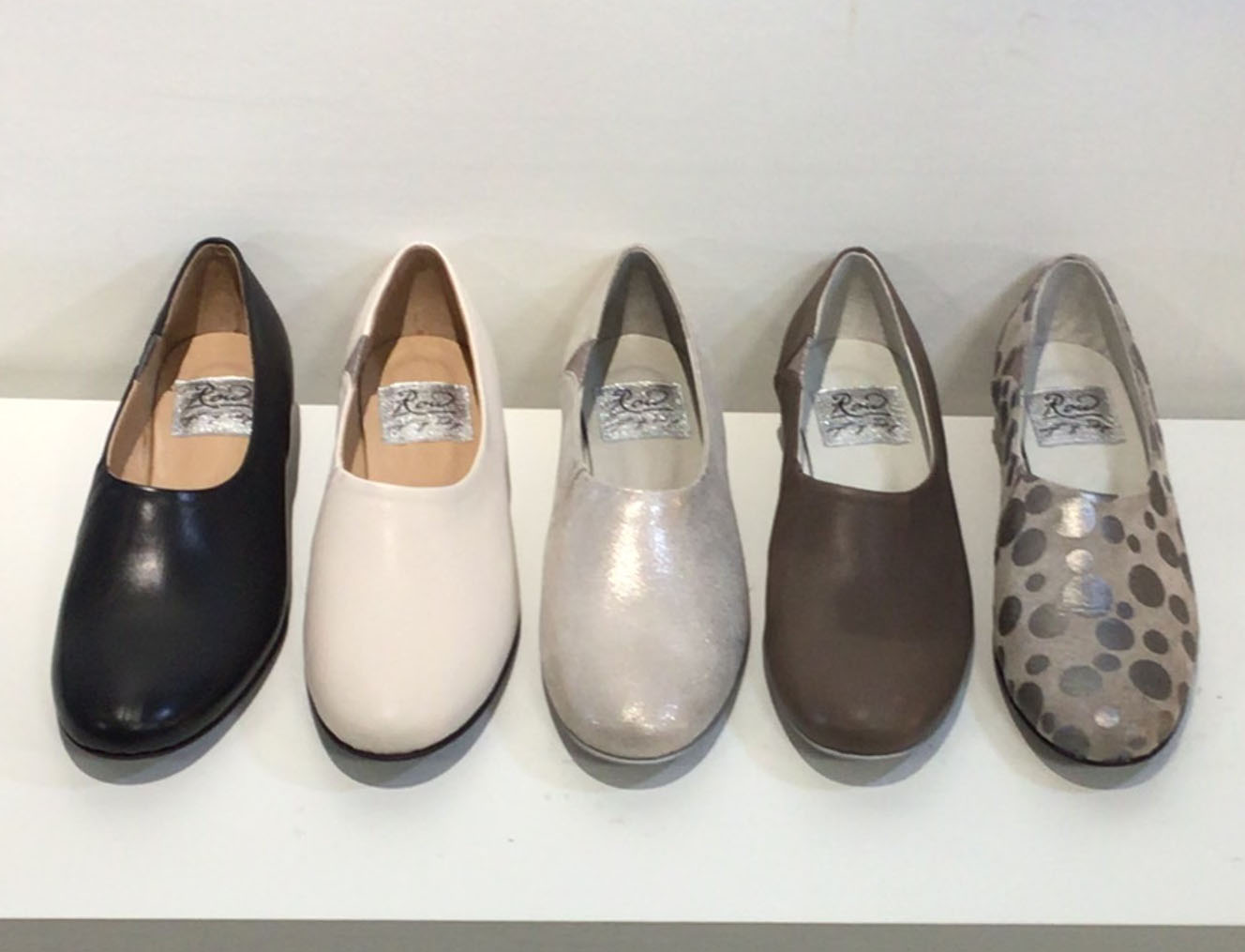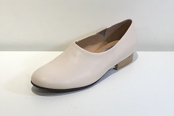 1861と同じころんとした木型のシンプルスリッポン。 甲の内側とカカト部分にスリットゴムが入っているので、スッとそのまま履けるデザインです。 飾りのないシンプルなフォルムなので合わせやすく、深めのカットラインはブーティー感覚でもお履き頂けます。 BL、IV、GYは透明感のあるカーフ(仔牛)素材を使い、革らしいツヤ感・味わいのある仕上がりです。 キメの細かな表面感も特徴で、履くほどに足に馴染み、風合いが出て来ます。 PTはライトなピンクゴールドのクラッキング素材で、よりソフトなムードに。 DOTはベージュ地にシルバーの大きなドット柄プリント。同系色なので上品なポップさに。