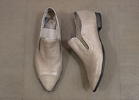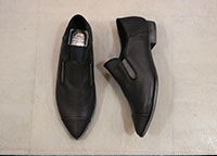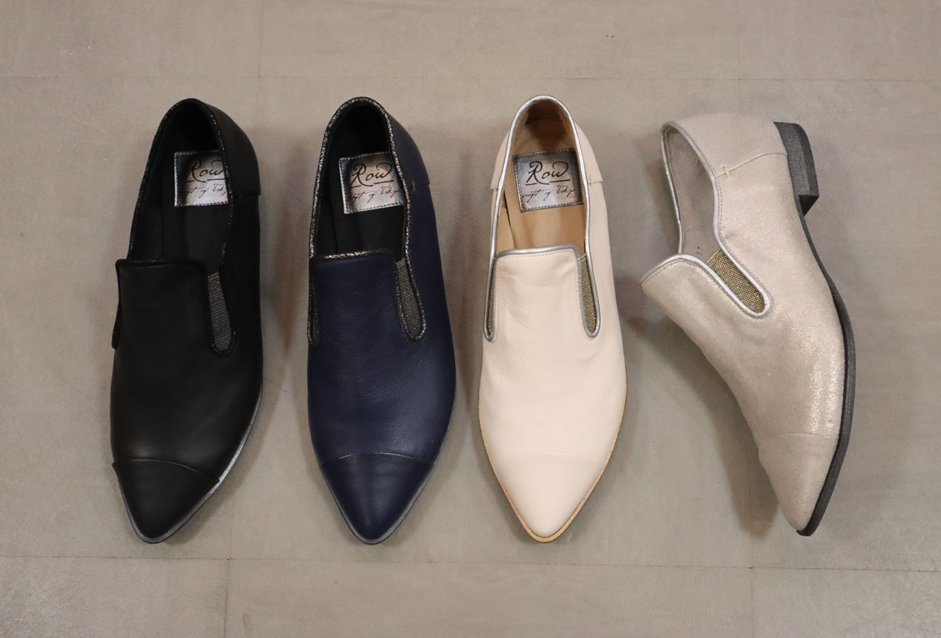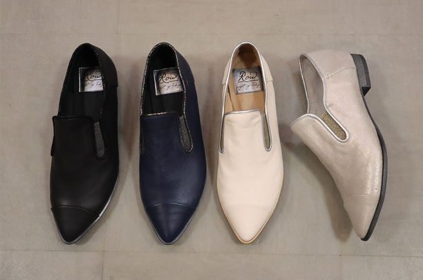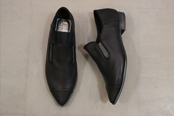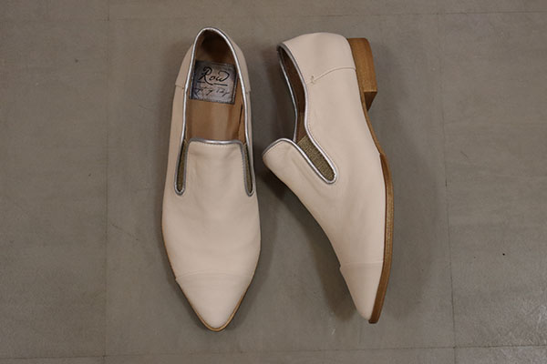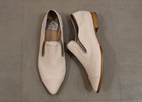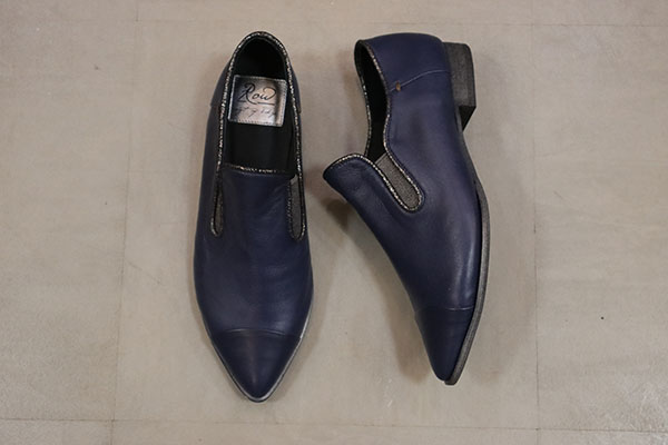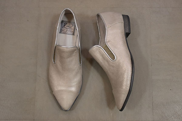 丸みのある優しいムードのポインテッドスリッポン 踏みつぶしても履けるソフトカウンター仕様の柔らか仕立て 足に吸い付く質感のsheepで作り、更に1足ずつ手洗いでクタクタな風合いに仕上げています サイドにラメ入りゴムを入れて、さり気なくキラキラした足元が楽しいデザインです