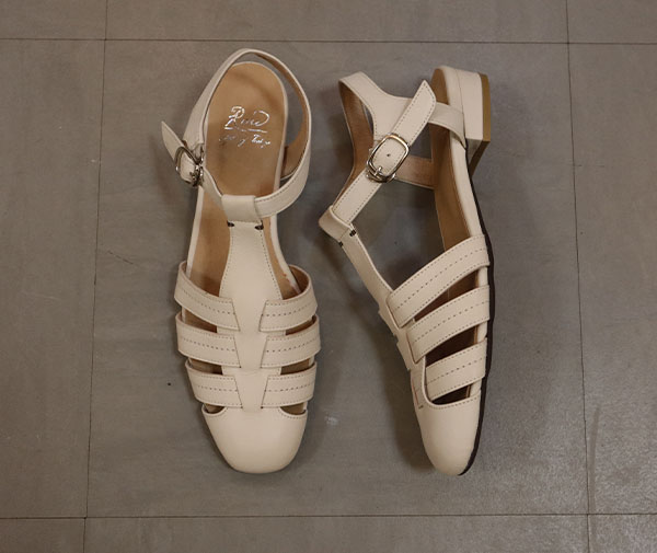 ここ数年人気が高く、定番的なデザインになったグルカモチーフ。 ROWではそのクラフト感を活かしながら、細見えする綺麗目木型でカジュアルパンプスに仕立てました。 足をしっかり覆いながら、透け感のあるデザインはサンダル代わりに長く履ける便利さも◎。 素足に映えるナチュラルカラーや、ソックス合わせが楽しくなるグリーンもオススメ!